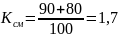 В цехе 100 единиц оборудования. В первую смену работало 90 станков, а во вторую 80. Определить фактический коэффициент сменности