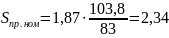 Скольжение при номинальном моменте на тормозной характеристике Sпр.ном