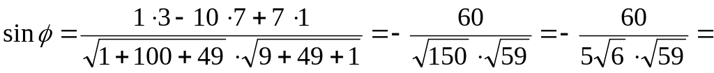 Синус этого угла находим по формуле: