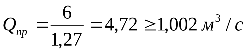 Qвс ≥ 1,43 · Qвр · Кр = 1,43 · 3,6 · 1 =5,14 м3/ с