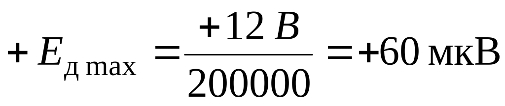 Величина K чрезвычайно велика; она может достигать 200000 единиц и более. Приняв K=200000, для ОУ, запитанного от источника 12 В, на основании (1.2) получим:
