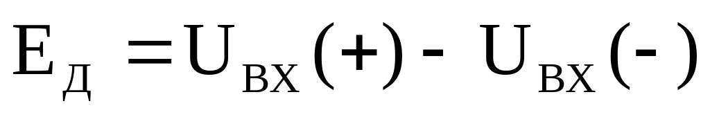 С учетом (6) напряжение на выходе ОУ, появляющееся при одновременной подаче дифференциального и синфазного входных сигналов, равно