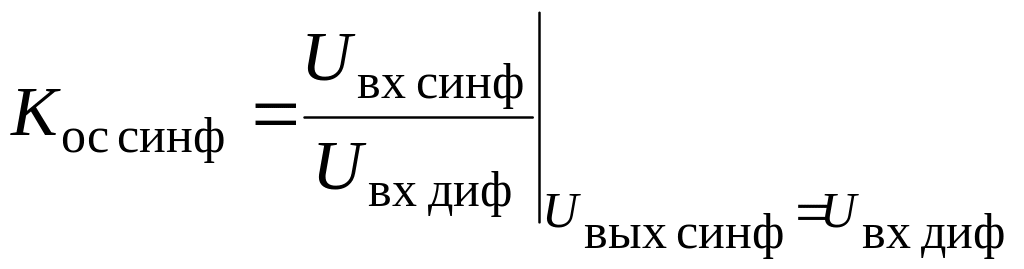 Коэффициент ослабления синфазного сигнала Кос синф определяется как отношение напряжения синфазного сигнала, поданного на оба входа, к дифференциальному входному напряжению, которое обеспечивает на выходе тот же сигнал, что и в случае синфазного напряжения: