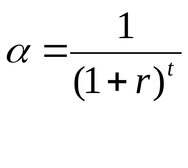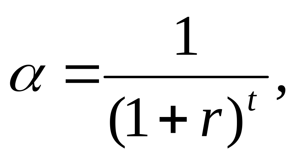 Технически приведение к определенному моменту времени затрат, результатов и эффектов, имеющих место на t-ом шаге расчета реализации проекта, удобно производить путем их умножения на коэффициент дисконтирования , определяемый для постоянной нормы дисконта r, которая выражается в долях единицы, как: