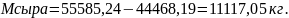 Масса сырья, идущая на производство