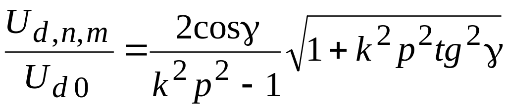 где U2 – действующее значение фазного напряжения вторичной обмотки трансформатора (или напряжение сети в бестрансформаторных схемах); р – число пульсаций выпрямленного напряжения; Uтп0 – максимальное значение среднего выпрямленного напряжения при γ = 0.