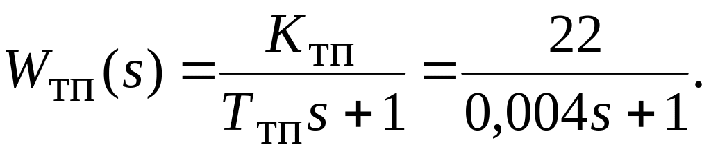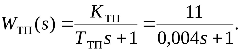 Определяем передаточную функцию тиристорного преобразователя по формуле (1.19)