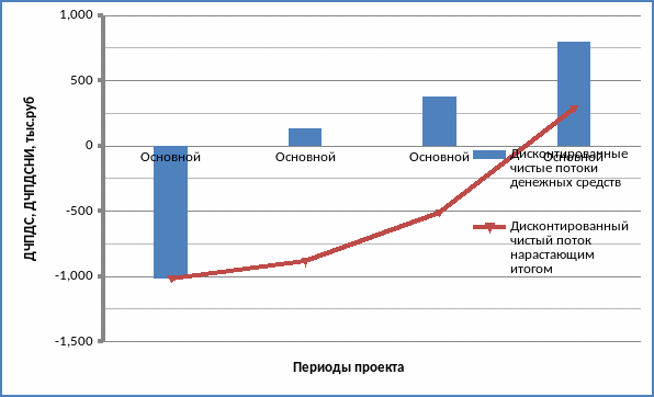 DPP можно определить графическим способом, построив график зависимости NPV (чистой текущей стоимости) от срока жизни проекта. Пересечение построенной линии с осью X даст информацию о дисконтированном сроке окупаемости (см. рис. Х).