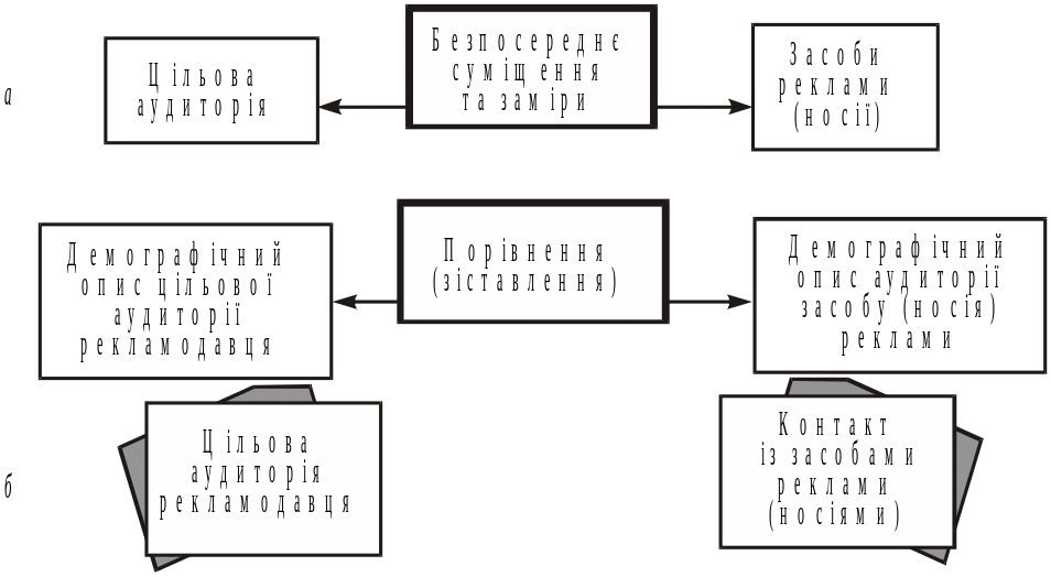 Попередній вибір засобів реклами та конкретних носіїв відбувається двома методами: прямого суміщення та демографічного зіставлення (рис. 3.13).