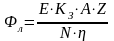 При расчетах методом коэффициента использования необходимый световой поток одной лампы в каждом светильнике определяется по формуле :