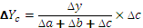 фактическое значение результативного показателя: у1 = а1 + b1 + c1
