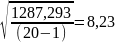 Так же рассчитаем стандартное отклонение σ. Расчет произведем по формуле: