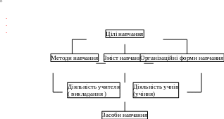 Засоби навчання мають самостійний статус поряд із цілями, змістом, методами й організаційними формами навчання. Всі компоненти взаємозумовлені й взаємопов'язані таким чином (рис. 1): цілі навчання (загальні й конкретні) реалізуються через зміст, методи й організаційні форми навчання; засоби навчання можуть виступати як спосіб реалізації (розвитку) змісту, методів і форм організації навчально-виховного процесу.