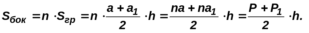 Теорема о площади боковой поверхности правильной усеченной пирамиды. Площадь боковой поверхности правильной усеченной пирамиды равна произведению полусуммы периметров ее оснований на апофему.