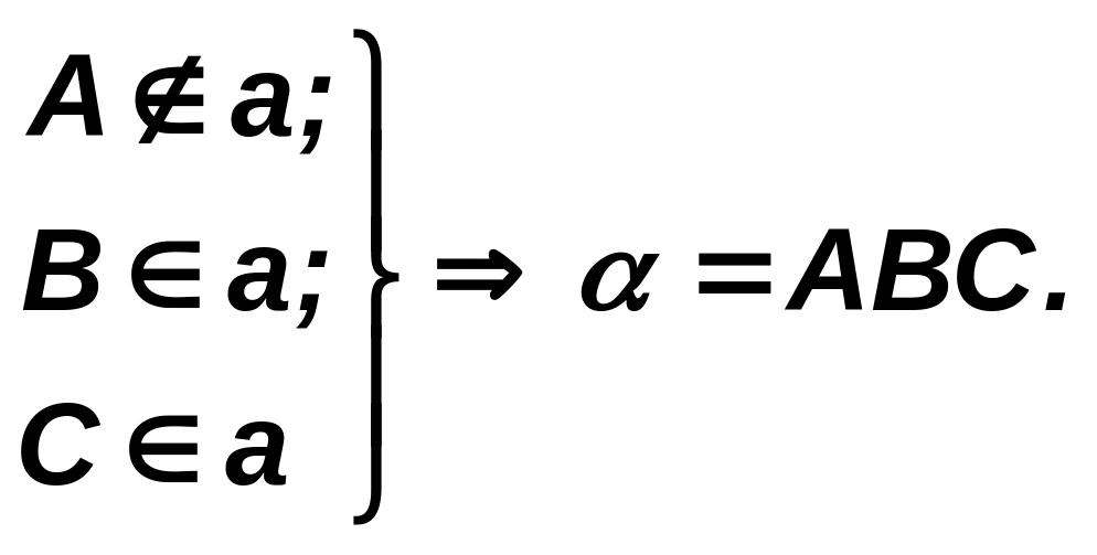 Три точки, принадлежащие одной прямой, называются коллинеарными, а три точки, не принадлежащие одной прямой, называются неколлинеарными. Все точки одной прямой коллинеарны. Любые три неколлинеарные точки определяют плоскость. Плоскость, которая проходит через три точки А, В и С, не лежащие на одной прямой (САВ), обозначают символически АВС; если этой плоскостью является плоскость , то пишут = АВС.