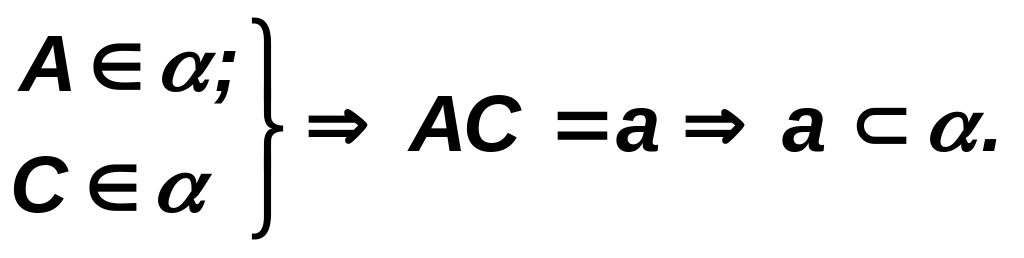 Аксиома 3 (аксиома принадлежности прямой плоскости). Если прямая проходит через две точки плоскости, то она лежит в этой плоскости.