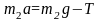 где а – ускорение системы, Т – сила натяжения нити, g - ускорение свободного падения, m1 – масса легкого груза, m2 – масса тяжелого груза.