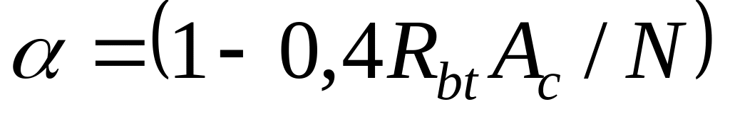 где N – расчетное продольное усилие, передаваемое с колонны на фундамент; Nc – продольное усилие, передаваемое с колонны на плитную часть фундамента; a – коэффициент, учитывающий частичную передачу продольной силы N на плитную часть фундамента через стенки стакана и принимаемый равным