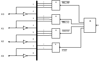 По заданной логической функции составить таблицу истинности, карту Карно, минимизировать её и преобразовать к виду имеющихся элементов И-НЕ, построить схему: