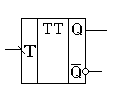 Т-триггеры используются при построении схем различных счётчиков, поэтому в составе БИС различного назначения обычно есть готовые модули этих триггеров. Условно-графическое обозначение T триггера приведено на рисунке 5.