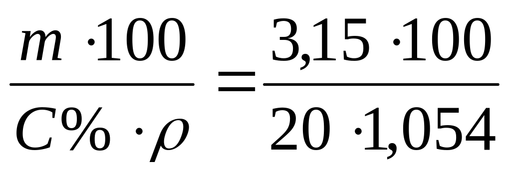 Это же количество кислоты должно содержаться в V* мл исходного 20 %-ного раствора. Из пропорции