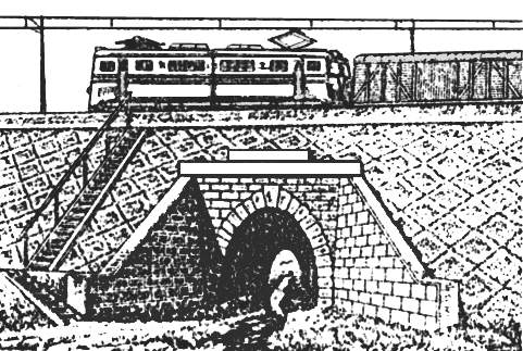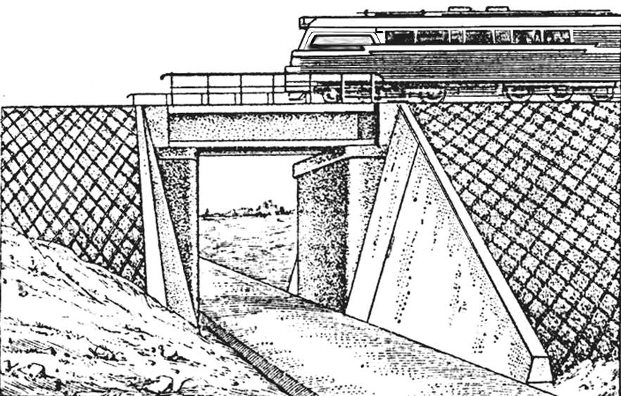 Регуляционные сооружения для защиты мостов и земляного полотна от размыва во время потоков и повреждения во время паводков и повреждения во время паводков и повреждения во время ледохода на подходах к ним.