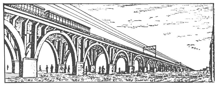 Виадуки при пересечении глубоких оврагов и ущелий.