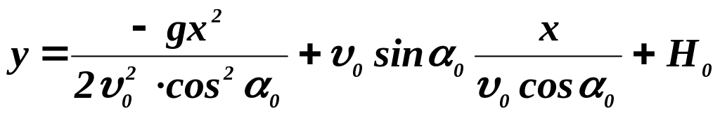 Материальная точка начинает движение в воздухе без сопротивления под углом 0 к горизонту с начальной скоростью 0 и на начальной высоте H0