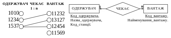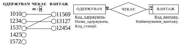 ОДЕРЖУВАЧ5–ВАНТАЖ5(Код_одержувача, Код_вантажу).
