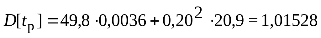 Для розрахунку М[tр], D[tр] використовують визначені у п. 3 величини M[m], D[m] та передбачені завданням (п. 4) значення М[р], υ[р].