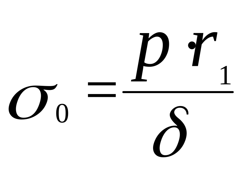 Напругу в закладці овальних перерізів (рис. 3.5, б) визначають так же, але замість r1 підставляють ρ2 і замість R0 величину R´0