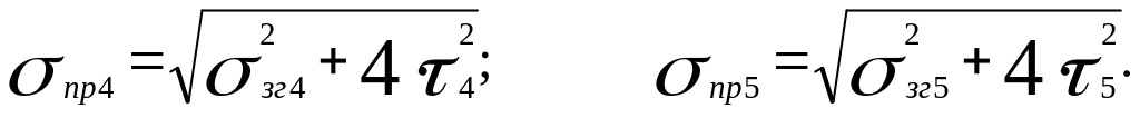 Приведені напруги в перерізах 4-4 і 5-5 відповідно визначаються за формулами