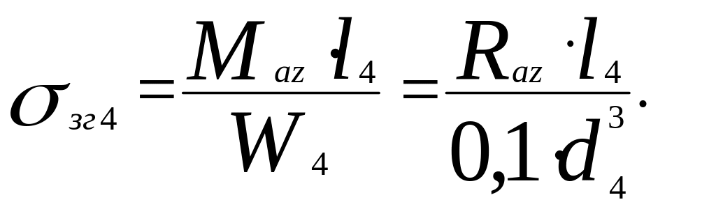 Напруга згину і кручення в перерізі 4-4 - умовному місці закладення плеча важеля у кільцеву частину - визначається за формулами
