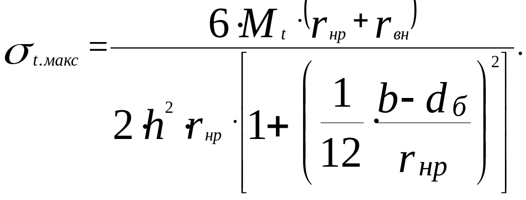 Напругу стиснення у меридіанній і напругу згину в діаметральній площинах не враховують. Напруга кручення в перерізі 1-1 визначається з виразу