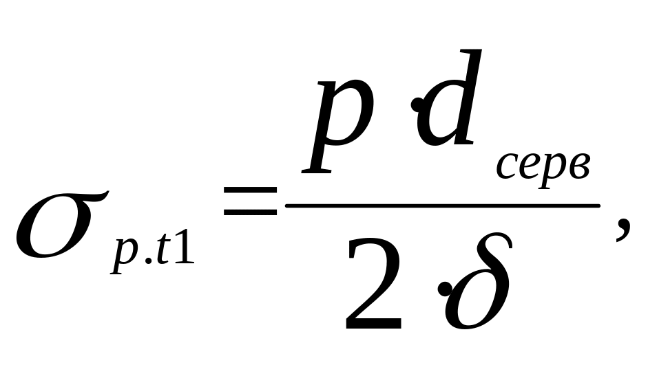 Розрахунок циліндра серводвигуна. Відповідно до діючих сил циліндр 1 (рис. 7.10, а) розраховують на розтягування у меридіанній і діаметральній площинах. У меридіанному перерізі циліндра від внутрішнього тиску масла, що вважають рівним номінальному, виникає розтягуюча напруга