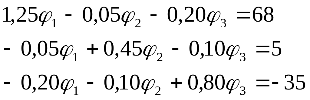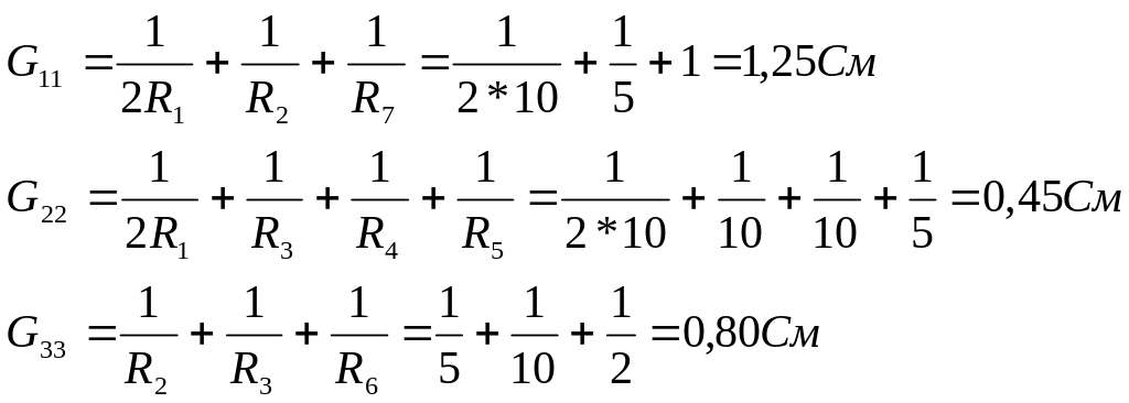 - записывают систему уравнений; в левой части уравнений слагаемые с собственной узловой проводимостью берут со знаком плюс, а слагаемые с общими узловыми проводимостями – со знаком минус;