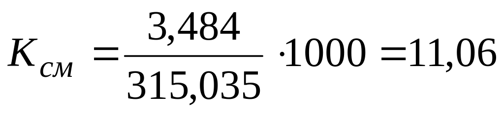 т.е. потери рабочего времени в течение рабочего дня в расчете на 1 рабочего составили 1,3%.