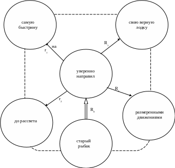 Для нашего случая предикатором выступает объединение слов уверенно направил. Как признак Attr(Attr) появляется, конечно, наречие или короткая форма прилагательного или причастия. Иначе говоря, здесь используется постоянная МИ, но согласования их не происходит да и не нужно (это неизменная часть речи – наречие). Следовательно, реализация связей типа Attr(Mov) – Mov, Attr(Attr) – Attr(Obj), Attr(Attr) – Attr(Mov) происходит однообразно и выполняется на синтаксическом уровне.