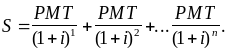 Якщо PMT - невідома величина річної виплати, а S - величина кредиту, то при відсотковій ставці кредиту і і кількості періодичних платежів n величина PMT може бути обчислена за допомогою рівняння: