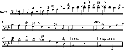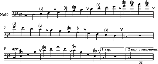 В зависимости от нюанса дыхание следует брать в медленном темпе через четыре четверти, в более быстром – через восемь четвертей. Порядок гамм написан от первой позиции. Их количество для ежедневных занятий определяется преподавателем и студентом.