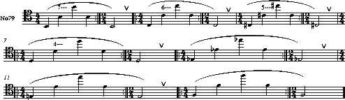 Кроме гаммообразного натурального легато на тромбоне есть еще интервальное натуральное легато. В нижеприведенных арпеджированных примерах предлагается поупражняться натуральным легато на каждой позиции тромбона без движения кулисы.