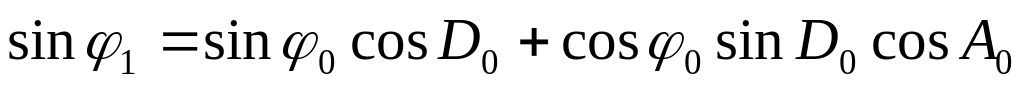 Для определения широты φ1 можно воспользоваться теоремой косинуса стороны сферического треугольника, согласно которой