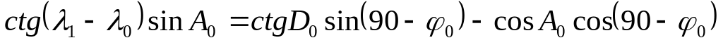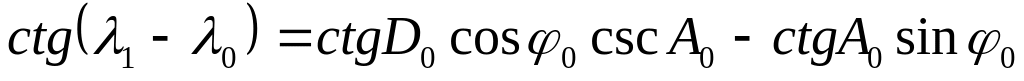 Долгота λ1может быть найдена как с использованием уже рассчитанной широты φ1, так и независимо от φ1. Рассмотрим независимое решение, которое выполняется с помощью теоремы котангенсов.