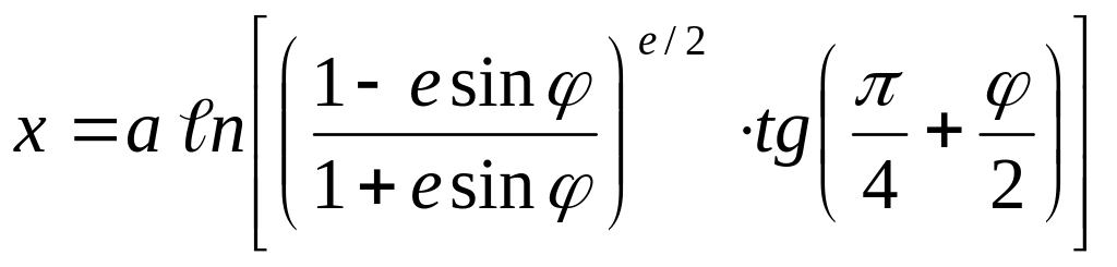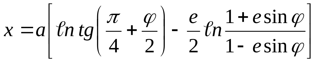 Найдем формулы для определения картографических координат х и y меркаторской проекции.