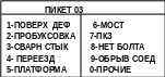 Для более точной привязки к пути оператор может использовать кнопку "Особые" для фиксации характерных точек пути (в том числе и нарушения в содержании пути). При нажатии этой кнопки на экране дефектоскопа появляется меню со списком особых отметок (рис. 24). Для записи отметки в память регистратора необходимо нажать соответствующую кнопку номера канала 0 – 9.