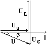 Т. к. емкостное сопротивление больше индуктивного, то для расчета угла сдвига фаз напряжения и тока воспользуемся векторной диаграммой