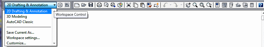 Натиснути праву кнопку миші на будь-якій піктограмі і в переліку, що з’являється, вибрати панелі інструментів Workspaces (Рабочие области) та Standard(Стандартная) (рис. 2.7). Розгляньте всі пункти меню і зупиніться на пункті 2D Drafting & Annotation (Двумерное черчение и аннотации).