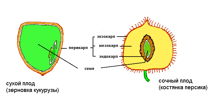 Плод состоит из околоплодника (перикарпа) и плодоножки.