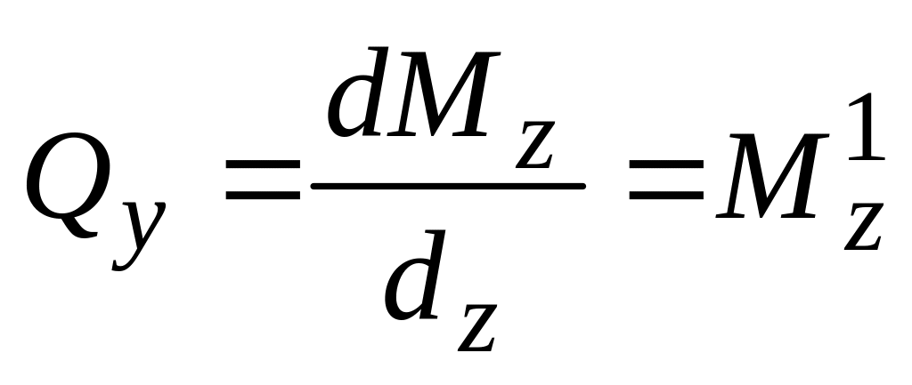 г) поперечна сила Qy на будь-якій ділянці має знак (+), якщо згинальний момент Mz зростає зліва направо на цій ділянці і навпаки;