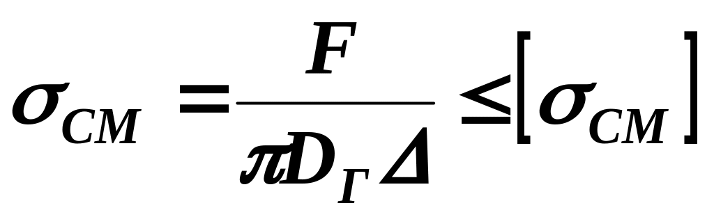 Допускаемые напряжения смятия для бронзы приняты равными: